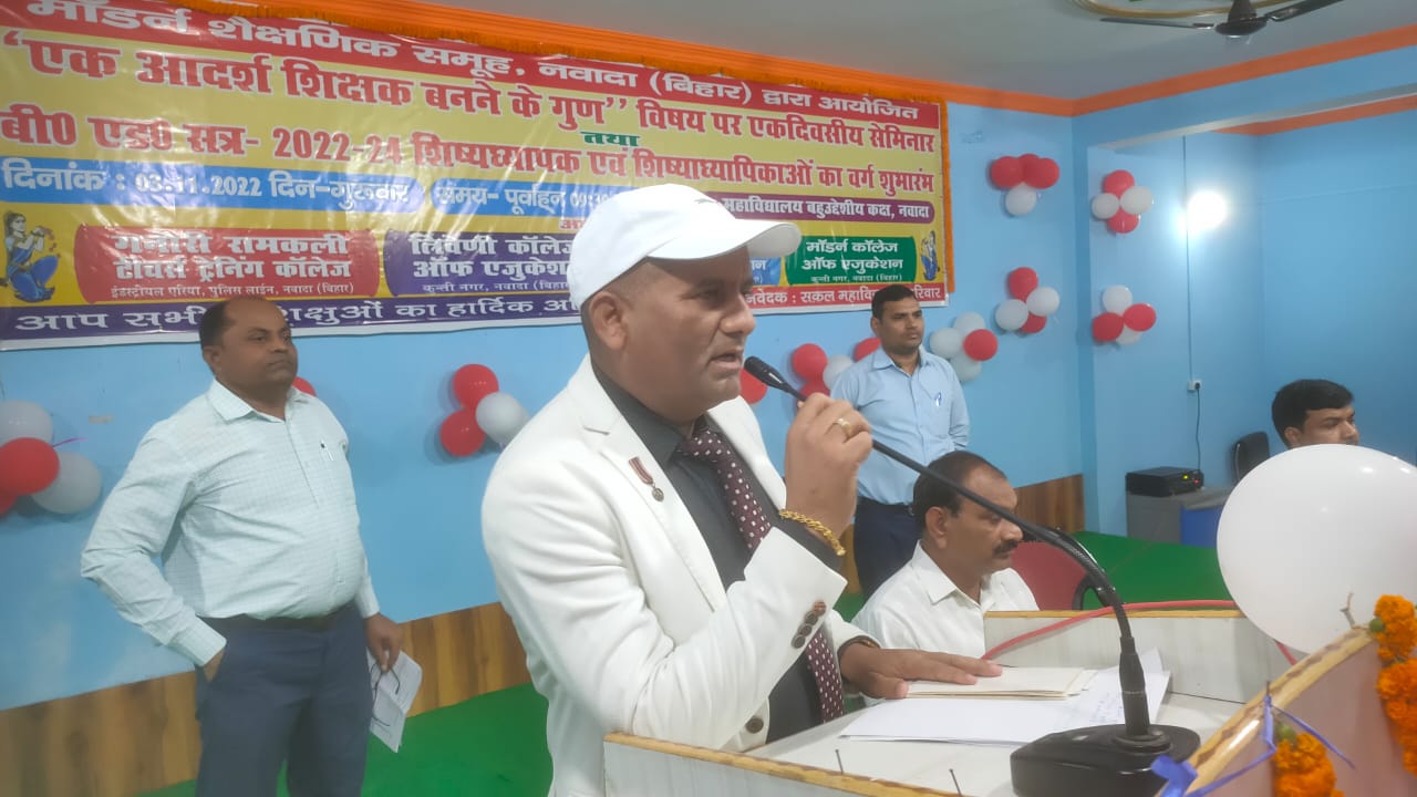 साथ ही गनौरी रामकली टीचर्स ट्रेंनिंग कॉलेज नवादा के एमएड विभागाध्यक्ष डॉ सनद कुमार दुबे एवं विभागाध्यक्ष (डीएलएड) वीरेंद्र कुमार सोनकर, डॉक्टर रीता नंदन चौधरी, सहायक प्राध्यापक श्रीमती मुन्नी कुमारी, व्याख्यातागण कुमार अजीत, दीपक कुमार पांडे, त्रिवेणी कॉलेज ऑफ एजुकेशन कुंती नगर नवादा के प्राचार्य डॉ कुलदीप सिंह तोमर, विभागाध्यक्ष (डीएलएड) डॉ फिरंगी यादव, तथा सहायक प्राध्यापक डॉ कुमार अभिषेक, मनीष कुमार, सुरेंद्र कुमार भारती, नवेंदु धीरज, प्रवीण कुमार, मॉडर्न इंस्टीट्यूट ऑफ हायर एजुकेशन नवादा के प्राचार्य मनीराम, सहायक प्राध्यापक धर्मराज गौड़, विनय कुमार, राजित राम यादव, नित्यानंद प्रधान एवं मॉडर्न कॉलेज ऑफ एजुकेशन नवादा के विभागाध्यक्ष देवकांत, सहायक प्राध्यापक राजीव कुमार, प्रवीण कुमार सिंह एवं अन्य ने अपने विचार व्यक्त किए। धन्यवाद ज्ञापन के पश्चात कार्यक्रम की समाप्ति की गई।