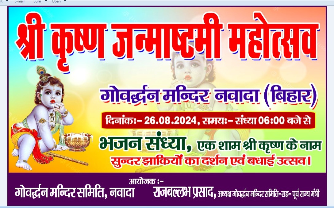 Nawada News : श्रीकृष्ण जन्माष्टमी पर गोवर्धन मंदिर में भव्य भजन संध्या सहित कई कार्यक्रमों का होगा आयोजन